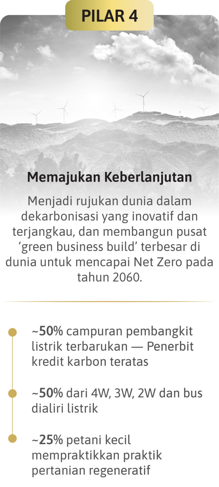 Untuk menjadi negara maju dan lepas dari jebakan negara kelas menengah, Peta Jalan ini merumuskan 4 pilar strategis untuk mencapai tujuan tersebut, antara lain: